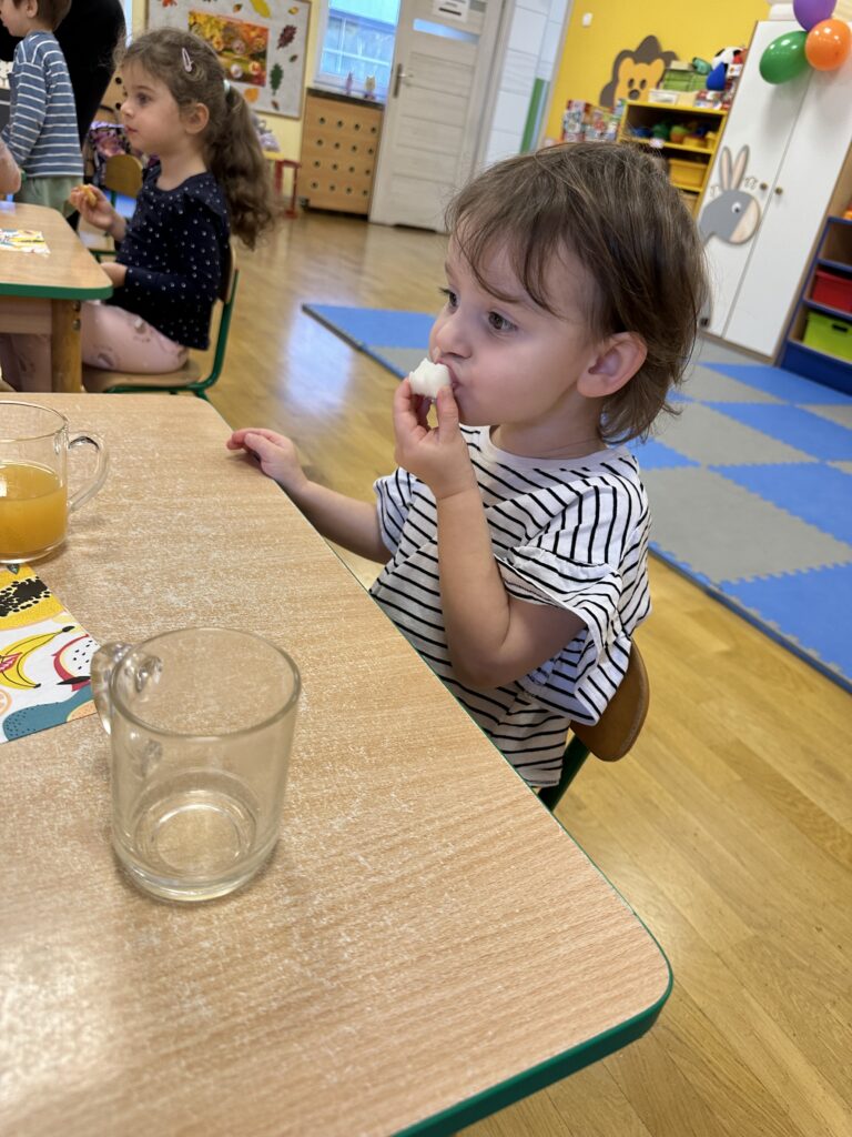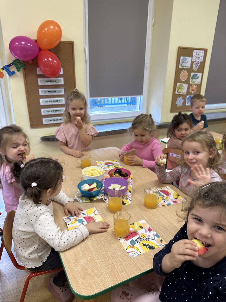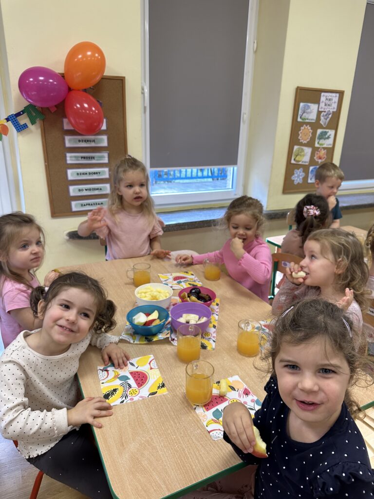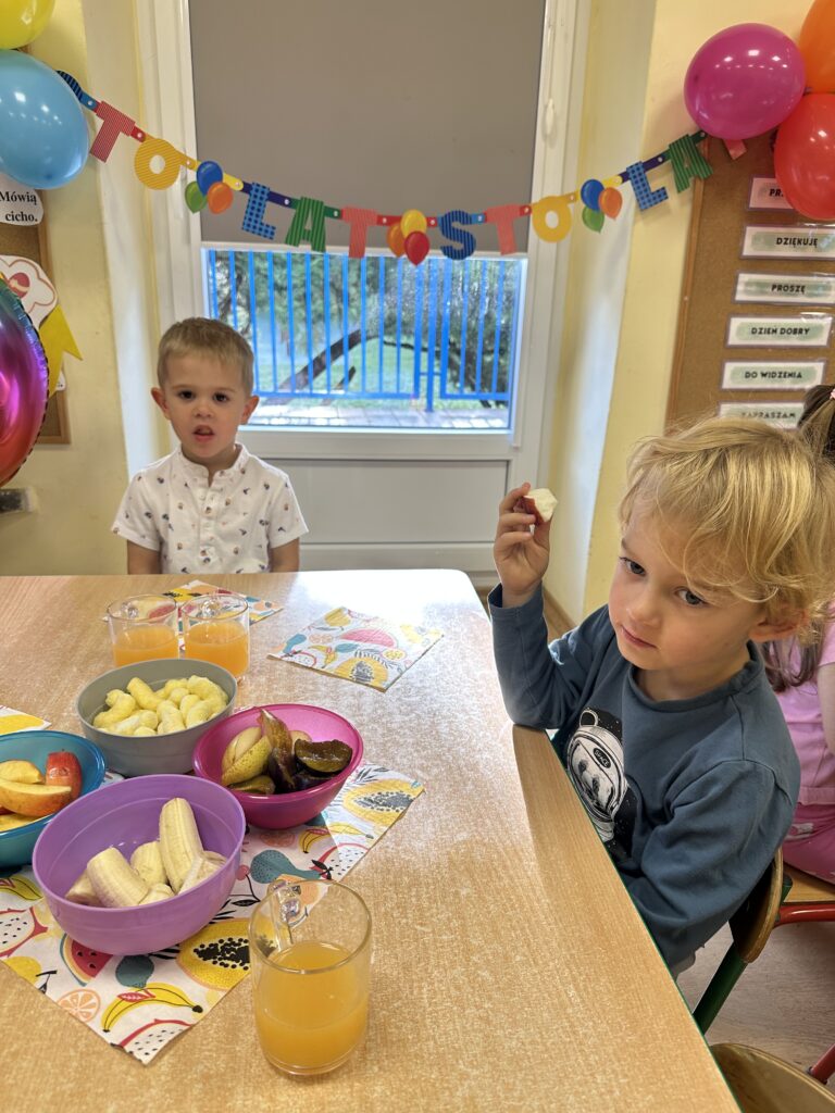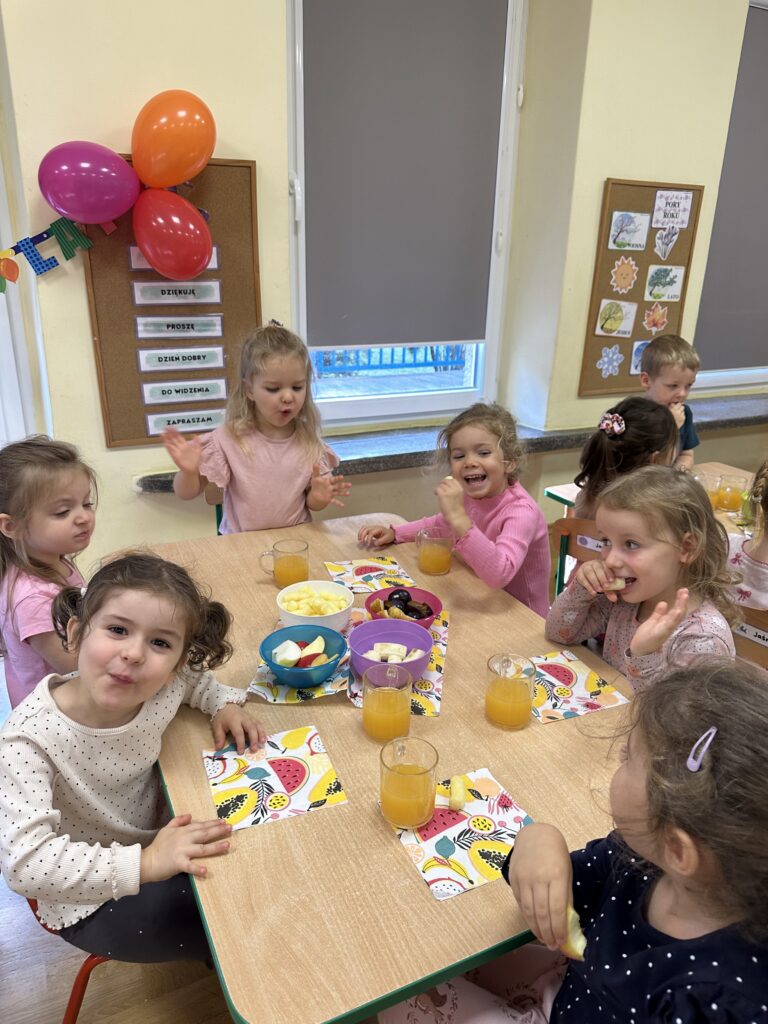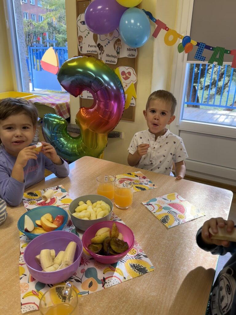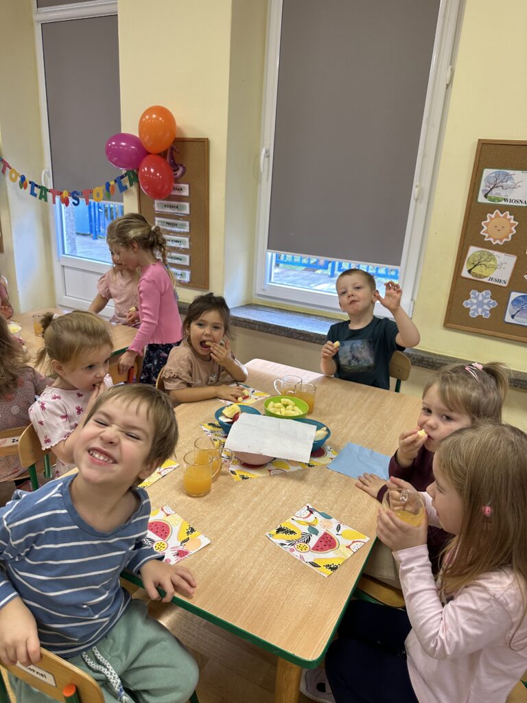 W poniedziałek obchodziliśmy urodziny Mikołaja. Z tej okazji zaśpiewaliśmy mu wszyscy tradycyjne „Sto lat” oraz złożyliśmy życzenia. Był również poczęstunek- pyszne i zdrowe owoce oraz nasze ulubione kukurydziane chrupki. Nie brakowało uśmiechu i super zabawy. Jeszcze raz wszystkiego najlepszego Mikołaj! Rośnij zdrowy i szczęśliwy! 🎈🧸