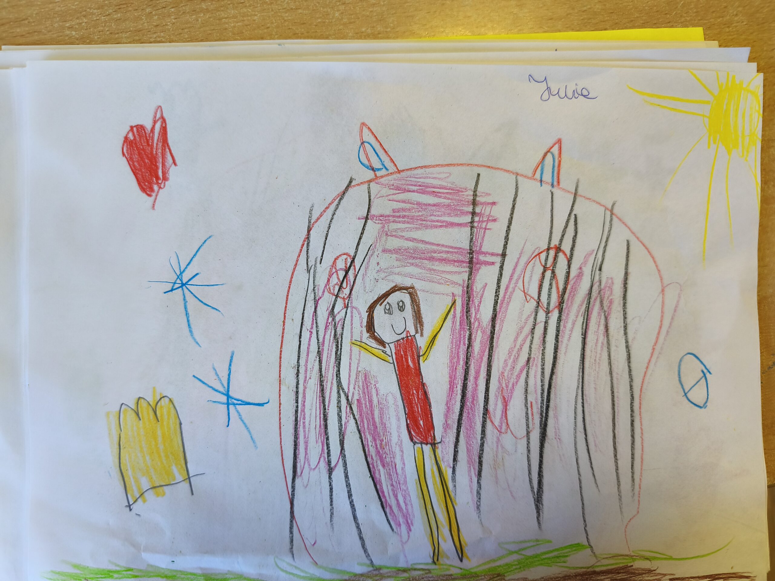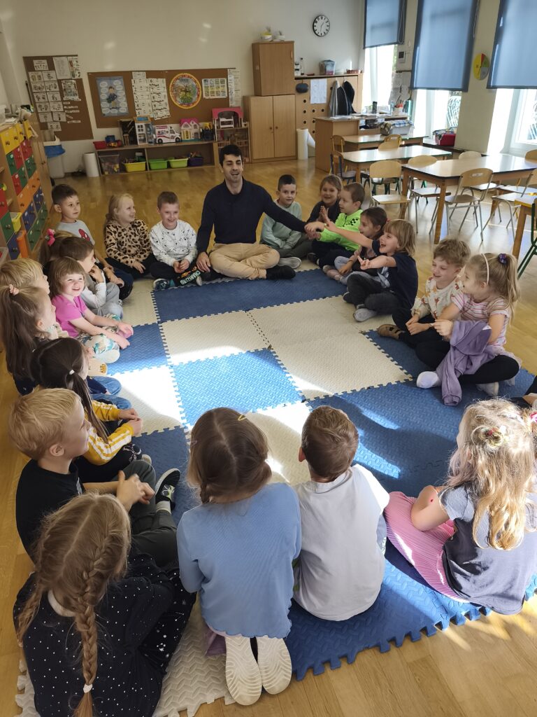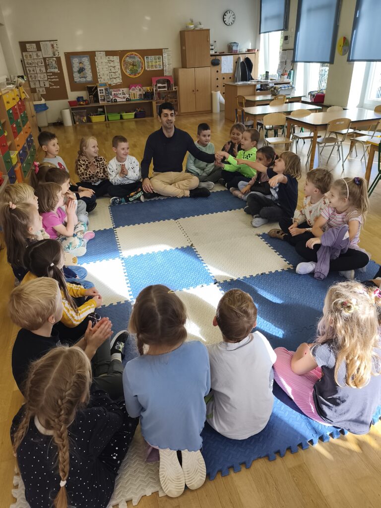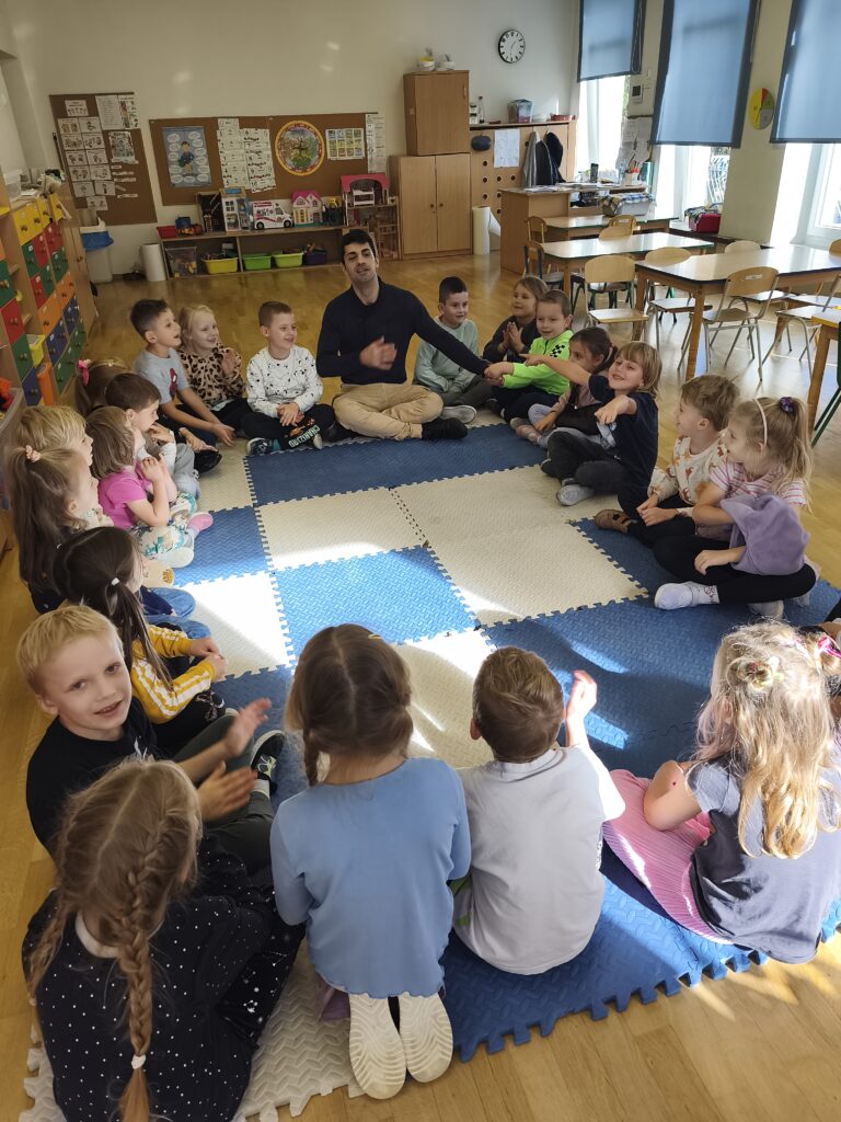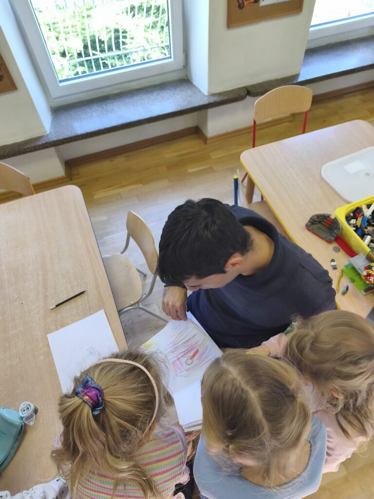 Wujek Giordano nauczył nas włoskiej wersji piosenki „Głowa, ramiona…”. Poznaliśmy nazwy części ciała, które są wymieniane w tym znanym utworze….