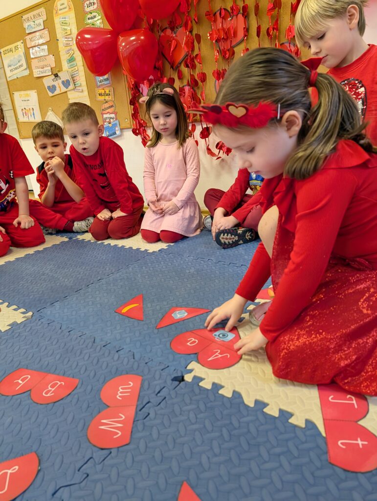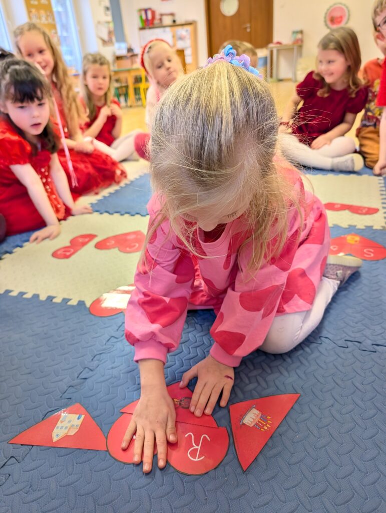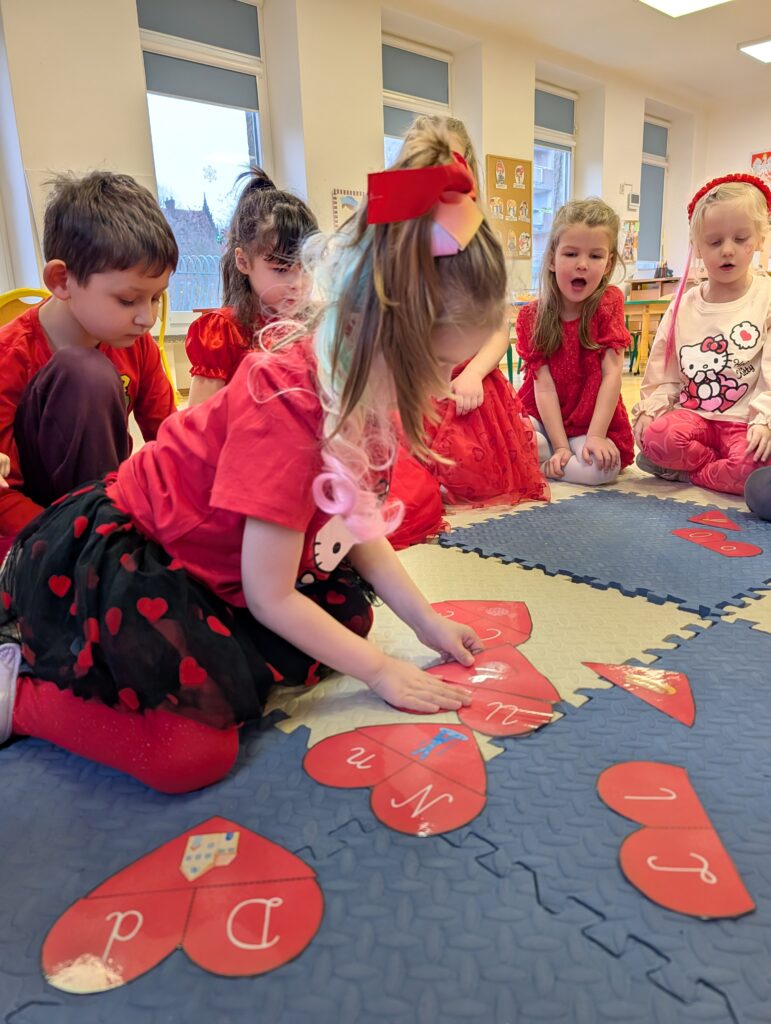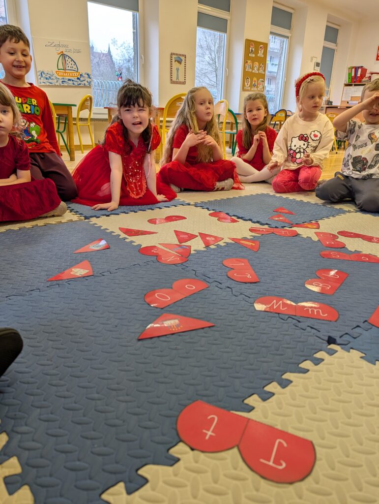 Wykonywaliśmy również różne zadania z serduszkami – liczyliśmy, dopasowywaliśmy i rozwiązywaliśmy walentynkowe ćwiczenia. To był bardzo miły, radosny i pełen uśmiechów dzień!