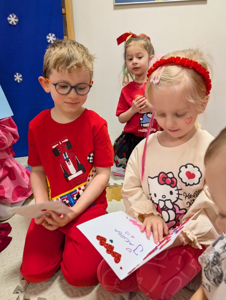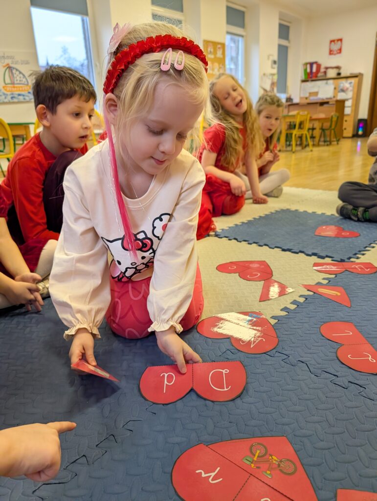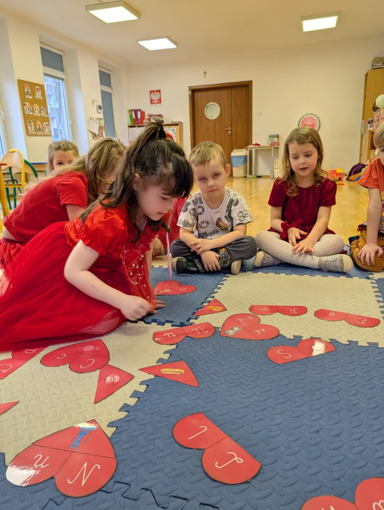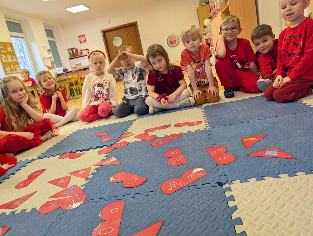 Wykonywaliśmy również różne zadania z serduszkami – liczyliśmy, dopasowywaliśmy i rozwiązywaliśmy walentynkowe ćwiczenia. To był bardzo miły, radosny i pełen uśmiechów dzień!