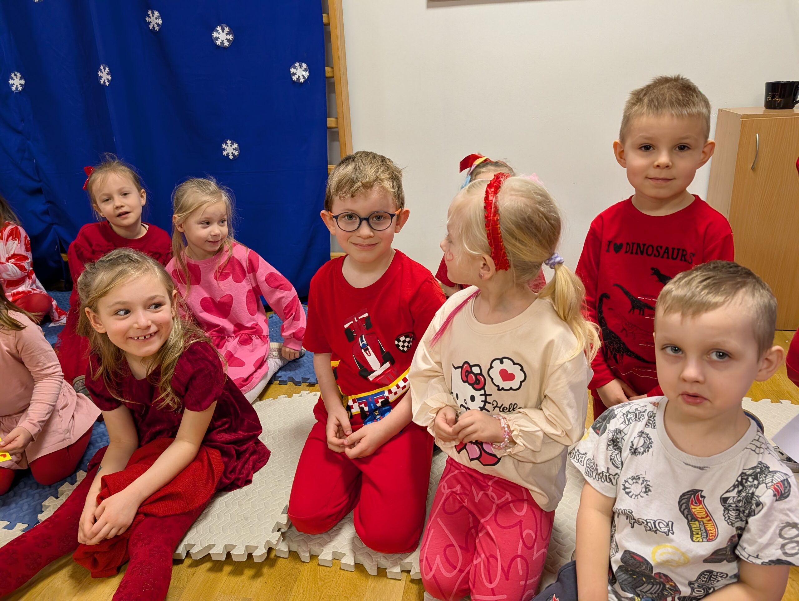 Robiliśmy sobie zdjęcia w walentynkowej fotobudce – było dużo śmiechu i świetnej zabawy. Czekaliśmy też z niecierpliwością na pocztę walentynkową i bardzo się cieszyliśmy, gdy mogliśmy wręczyć kartki koleżankom i kolegom.