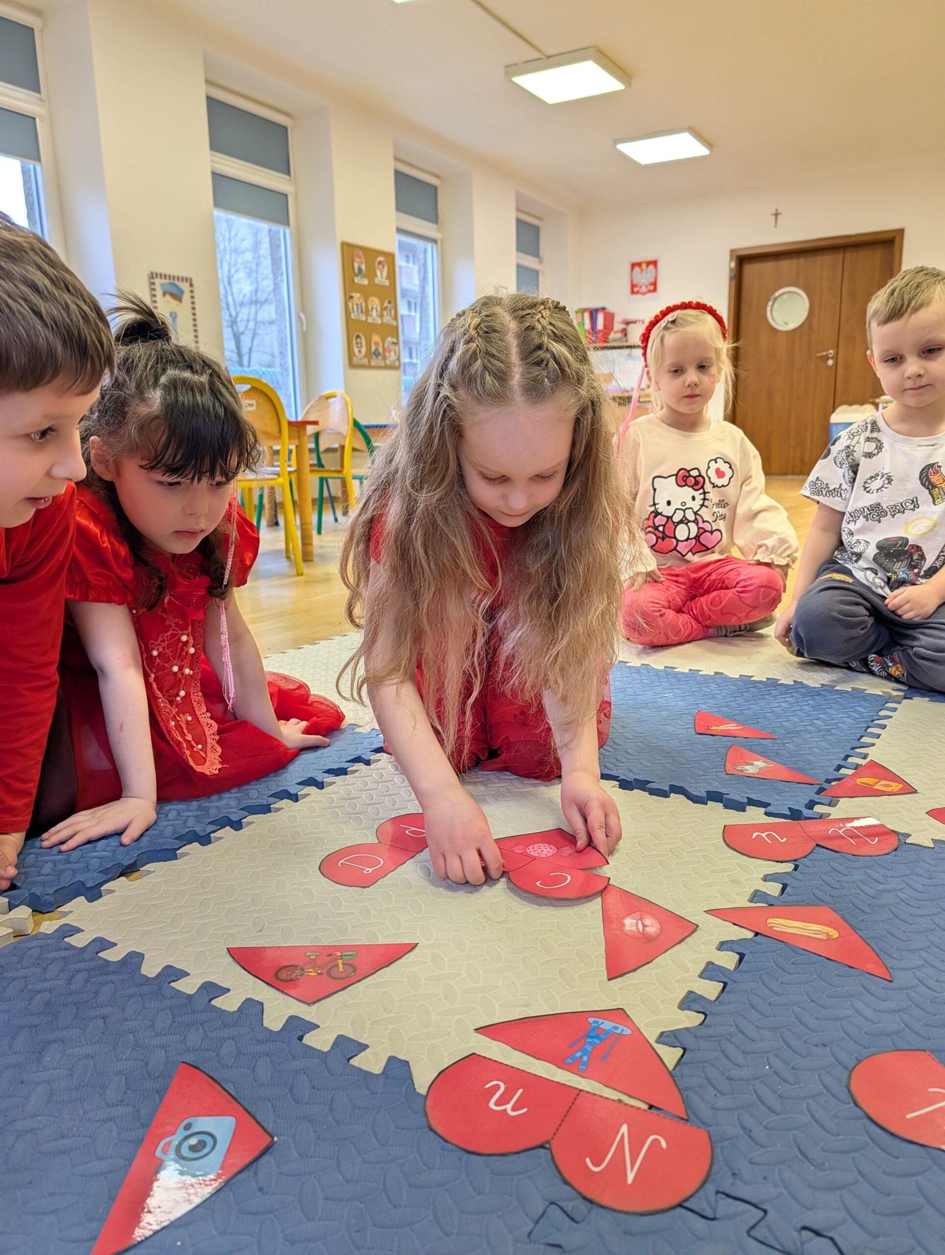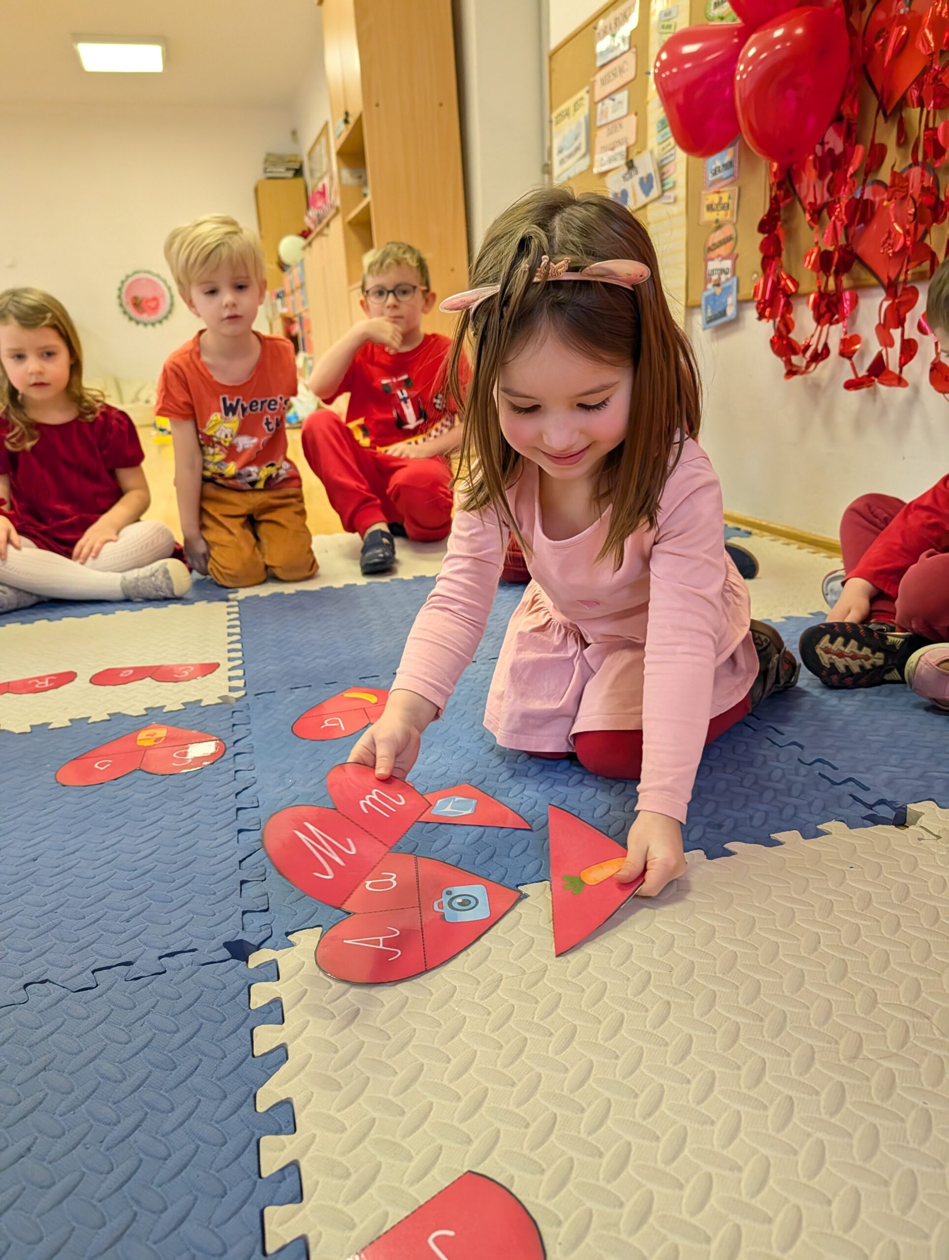 Wykonywaliśmy również różne zadania z serduszkami – liczyliśmy, dopasowywaliśmy i rozwiązywaliśmy walentynkowe ćwiczenia. To był bardzo miły, radosny i pełen uśmiechów dzień!