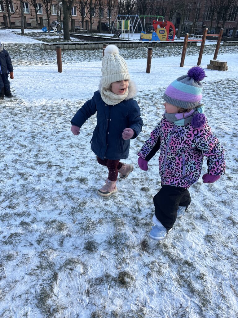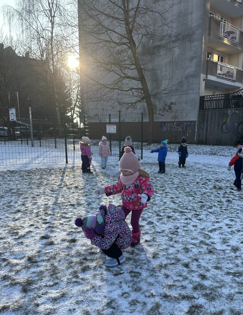 Żaden mróz nam nie straszny! Zawsze tylko musimy pamiętać, aby ubrać się odpowiednio do pogody… i można iść na dwór. Tym bardziej kiedy jest śnieg. Co prawda nie było go bardzo dużo, ale nawet niewielka jego ilość sprawiła nam dużo frajdy. Było mnóstwo śmiechu, ruchu i dobrej zabawy na świeżym powietrzu. Uwielbiamy zimę! ❄️