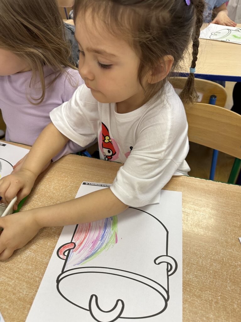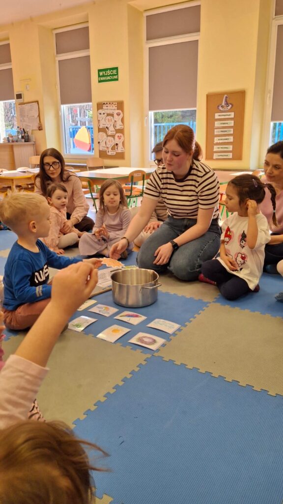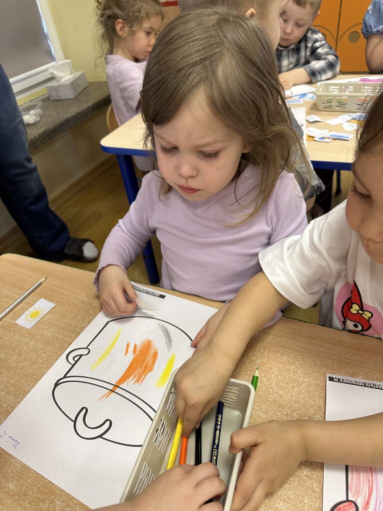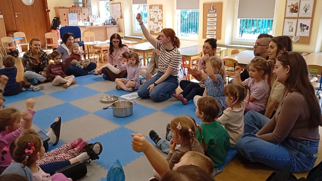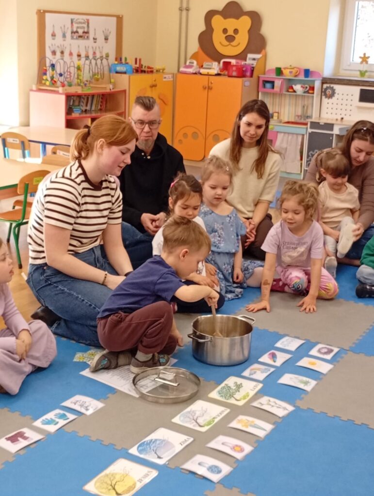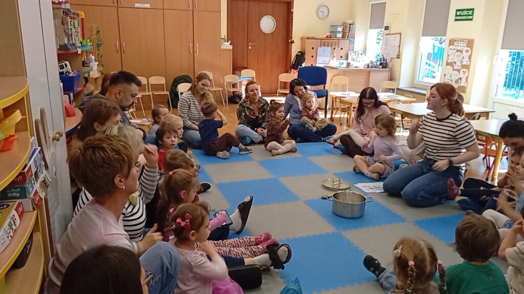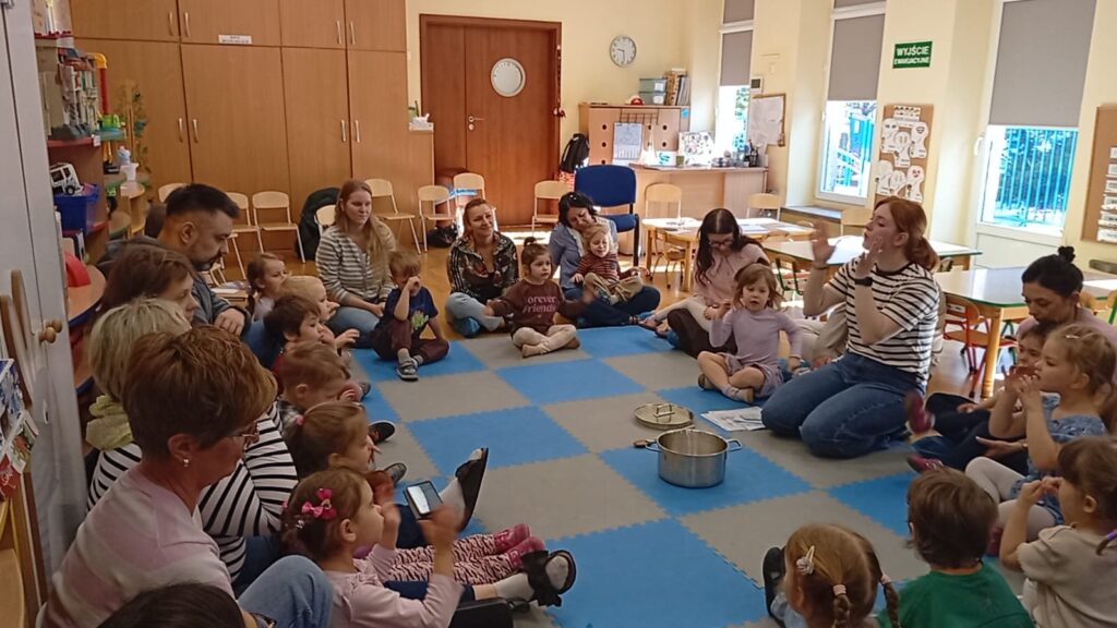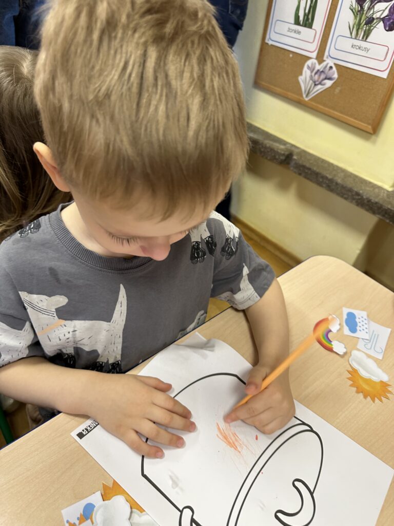 W środę na zajęciach odwiedzili nas rodzice. Mieli okazję zobaczyć, jak wygląda nasza codzienna praca oraz jak zdobywamy nową wiedzę i rozwijamy nasze umiejętności. Tematem zajęć było „W marcu jak w garncu”. Rozmawialiśmy o zmiennej, marcowej pogodzie oraz poznawaliśmy różne zjawiska atmosferyczne – słońce, deszcz, wiatr i śnieg. Przypomnieliśmy sobie także pory roku oraz zwiastuny wiosny. Przy tym doskonaliliśmy umiejętności matematyczne oraz analizę i syntezę słuchową. Nie zabrakło także aktywności ruchowych oraz pracy plastycznej związanej z tematem dnia. To było radosne i pełne wrażeń spotkanie, podczas którego z zaangażowaniem prezentowaliśmy swoje umiejętności, a rodzice mogli zobaczyć, jak wygląda nauka w przedszkolu każdego dnia.