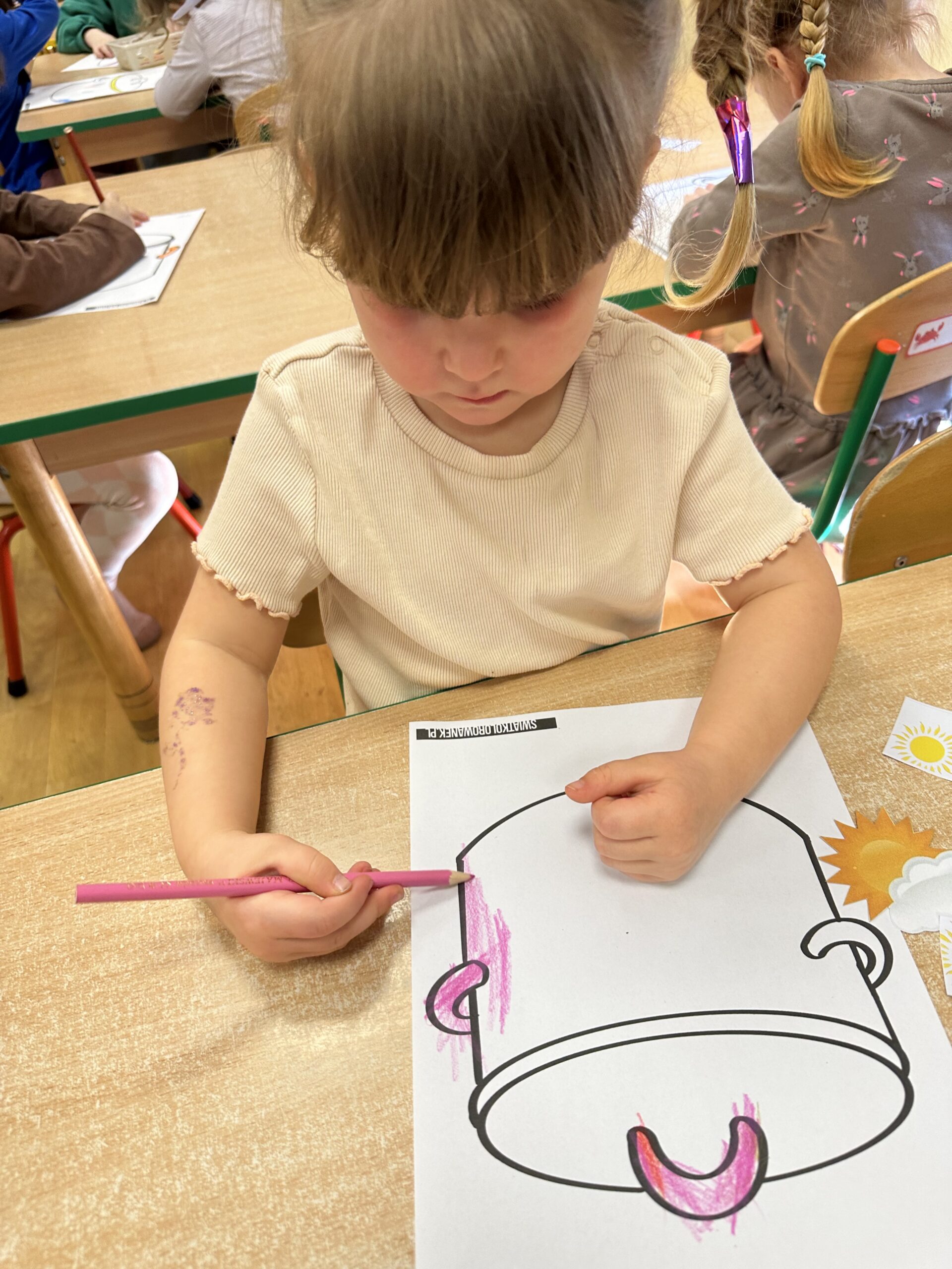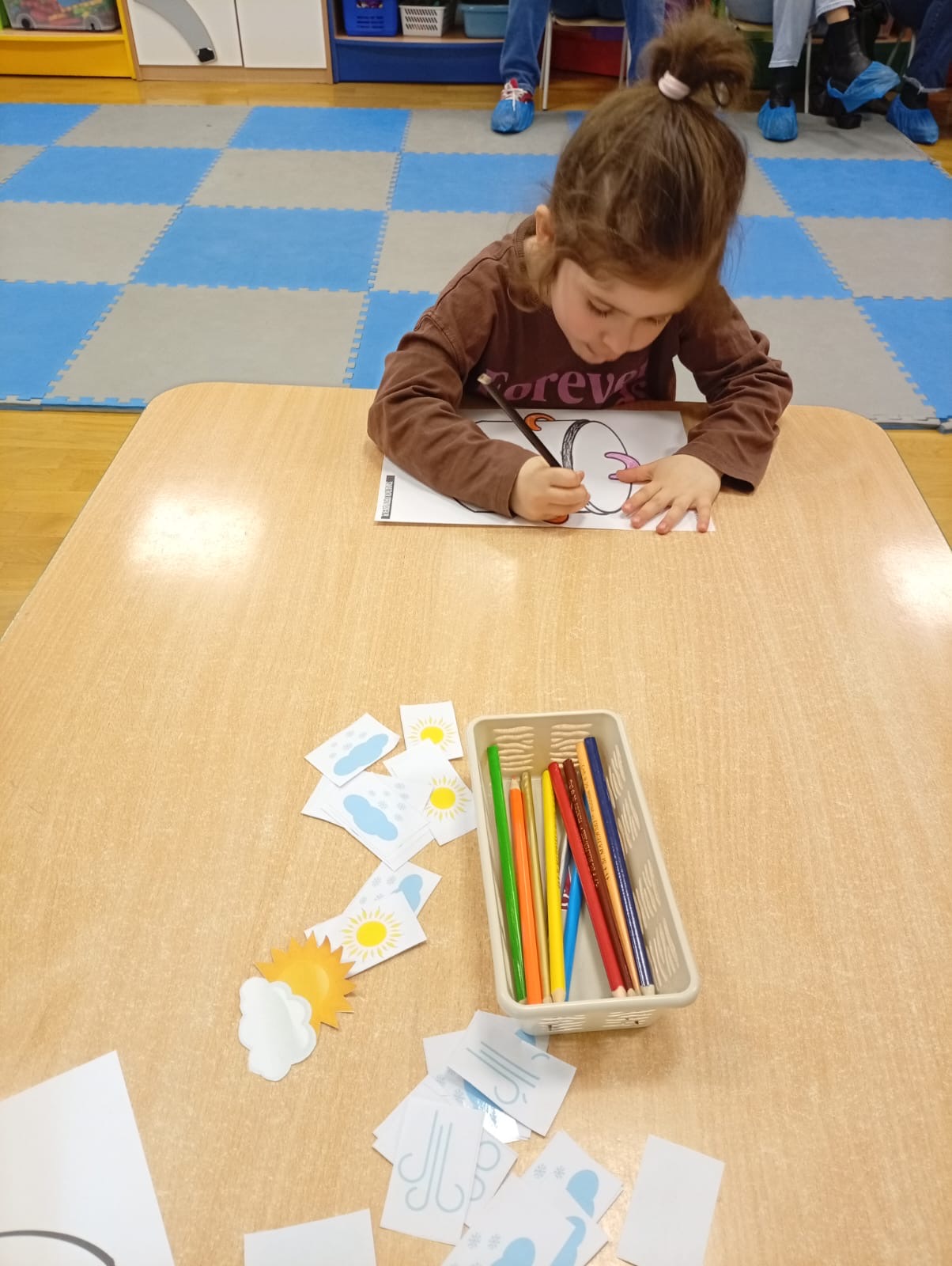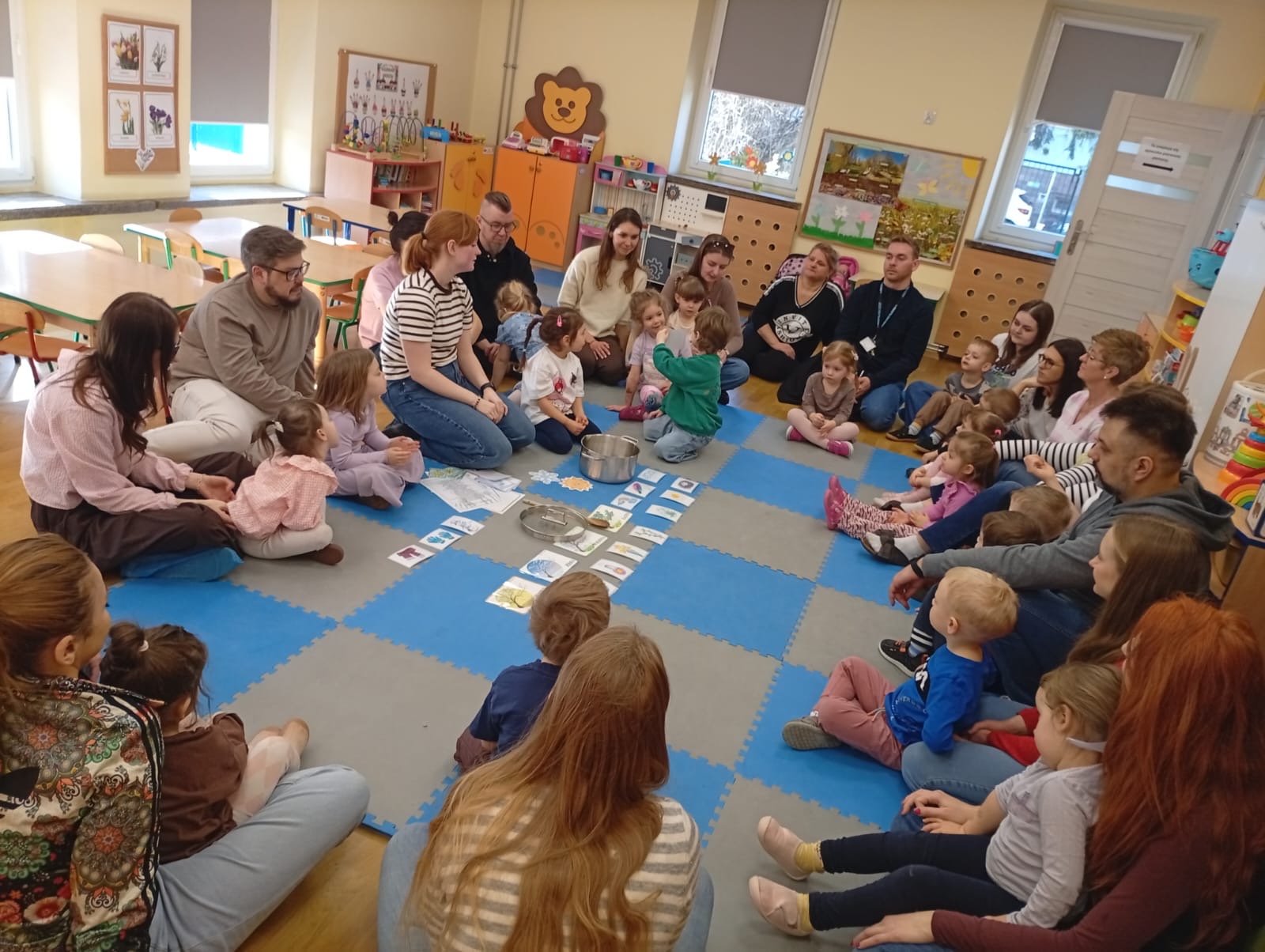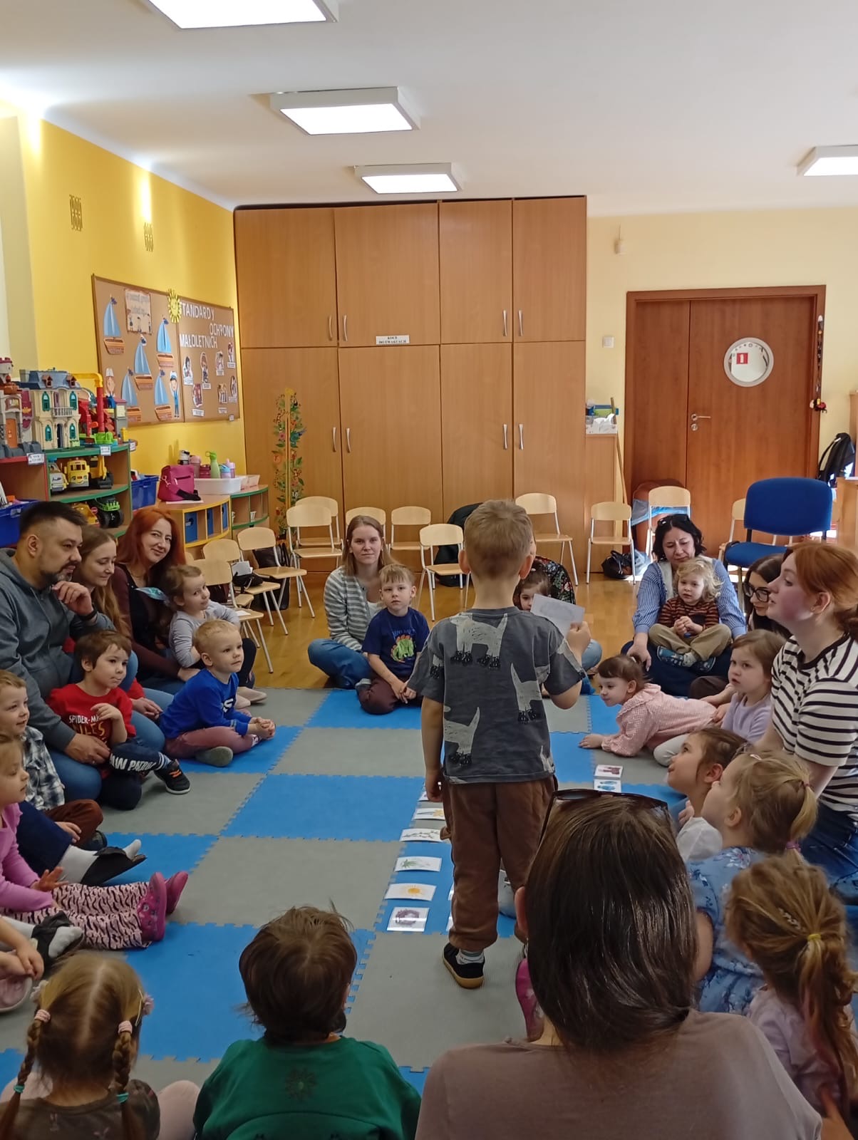 W środę na zajęciach odwiedzili nas rodzice. Mieli okazję zobaczyć, jak wygląda nasza codzienna praca oraz jak zdobywamy nową wiedzę i rozwijamy nasze umiejętności. Tematem zajęć było „W marcu jak w garncu”. Rozmawialiśmy o zmiennej, marcowej pogodzie oraz poznawaliśmy różne zjawiska atmosferyczne – słońce, deszcz, wiatr i śnieg. Przypomnieliśmy sobie także pory roku oraz zwiastuny wiosny. Przy tym doskonaliliśmy umiejętności matematyczne oraz analizę i syntezę słuchową. Nie zabrakło także aktywności ruchowych oraz pracy plastycznej związanej z tematem dnia. To było radosne i pełne wrażeń spotkanie, podczas którego z zaangażowaniem prezentowaliśmy swoje umiejętności, a rodzice mogli zobaczyć, jak wygląda nauka w przedszkolu każdego dnia.