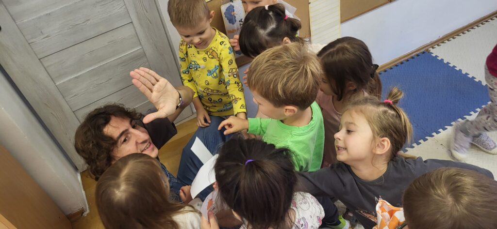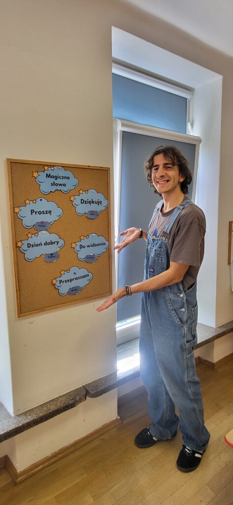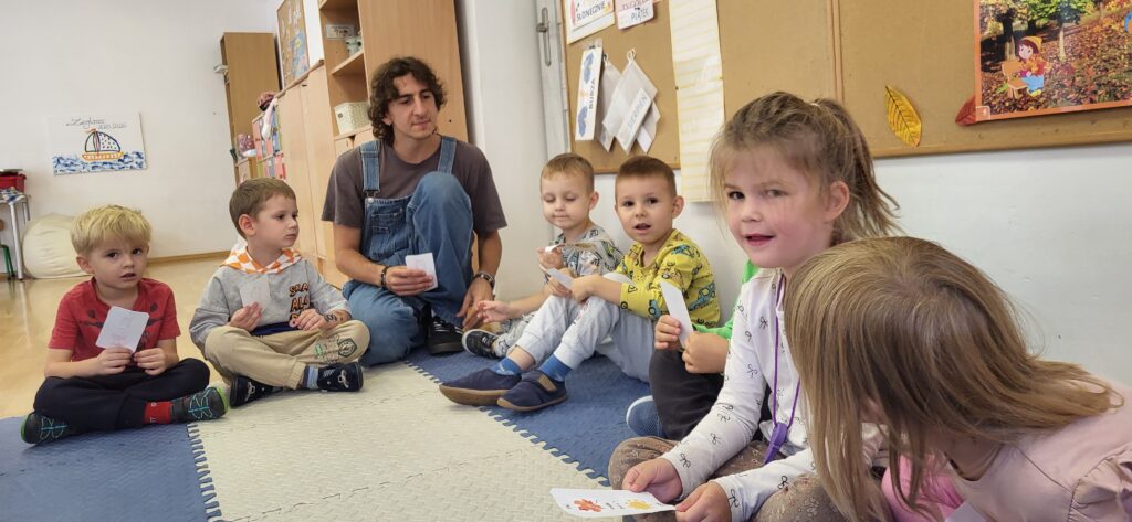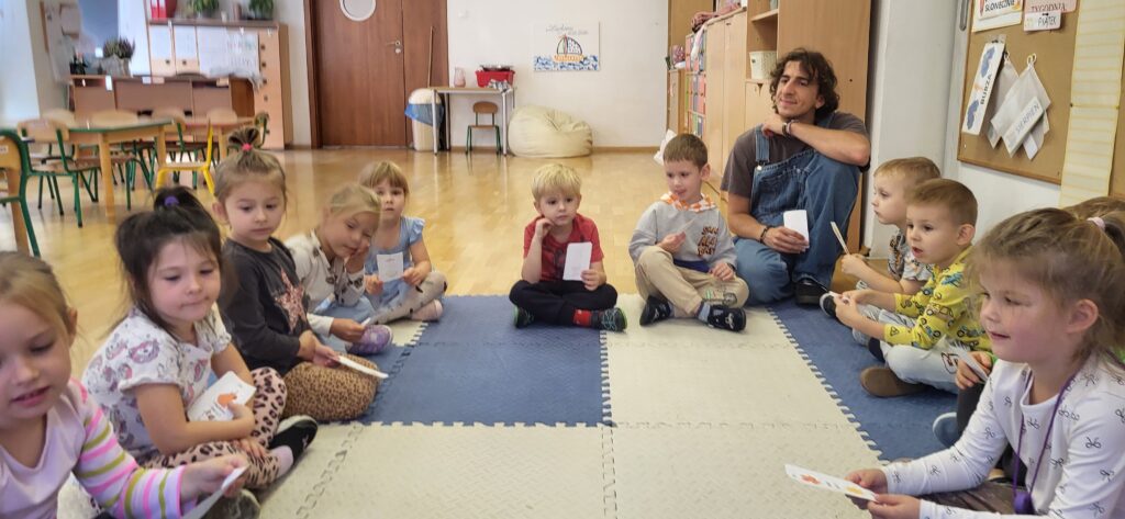 W naszej grupie gościmy wolontariusza z Francji, który zorganizował dla dzieci krótkie, bardzo ciekawe zajęcia. Podczas spotkania dzieci poznały podstawowe, tak zwane „magiczne słowa” w języku francuskim, takie jak bonjour, merci czy s’il vous plaît. Była to wspaniała okazja do nauki poprzez zabawę oraz do poznania innej kultury i języka.