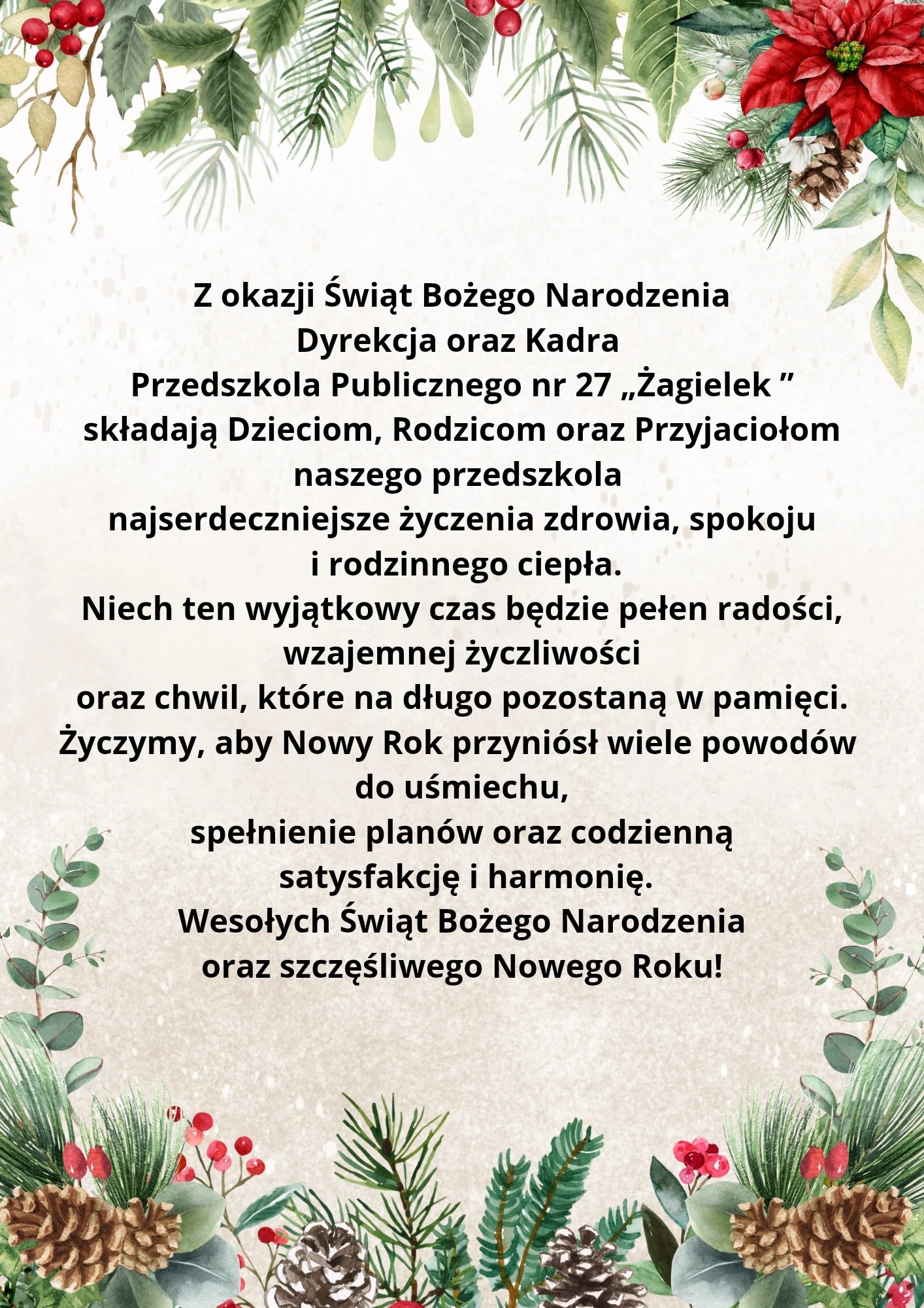 W przeddzień Świąt Bożego Narodzenia składamy całej społeczności „Żagielka” – Dzieciom, Rodzicom i Bliskim ciepłe, pogodne życzenia. Dzieciom – choć…